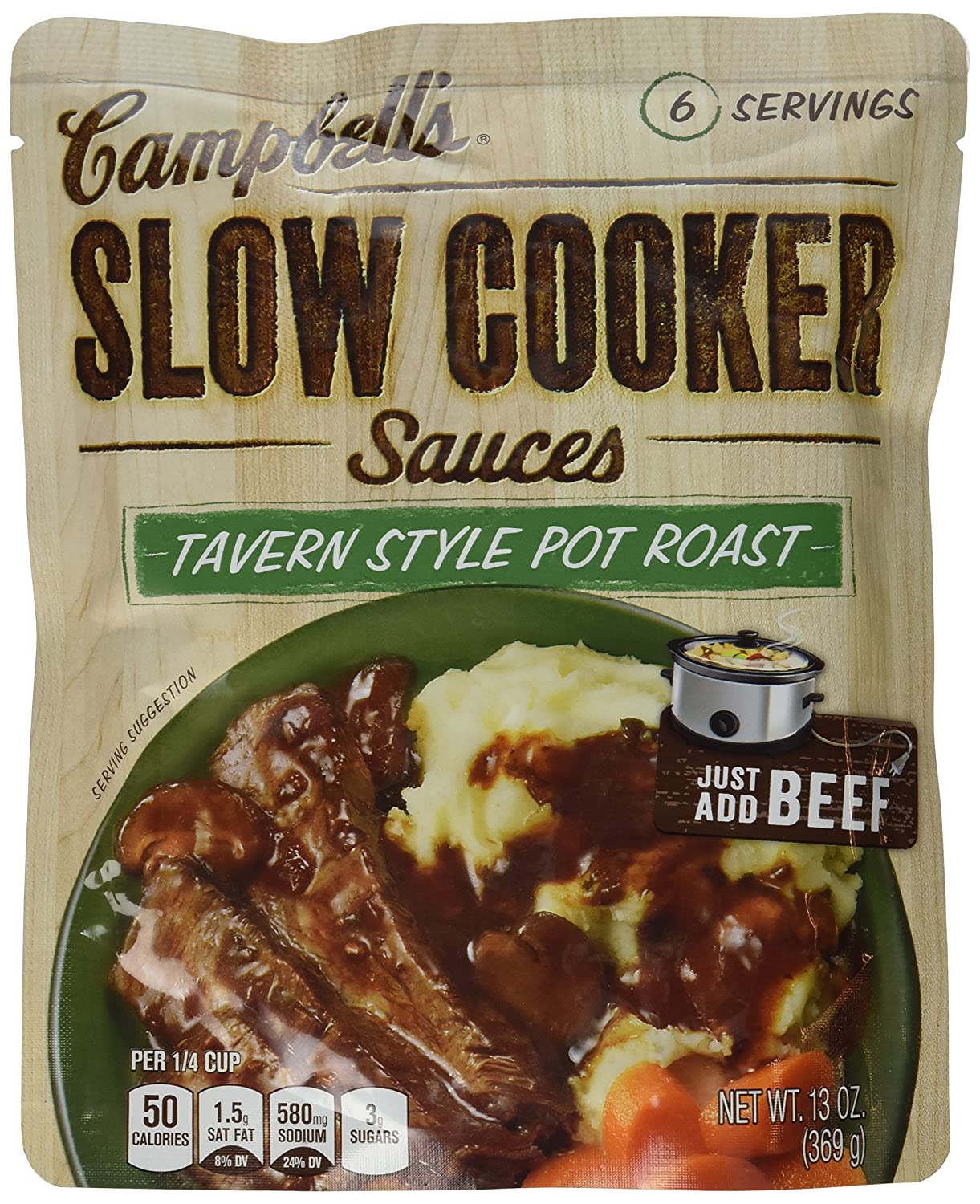 Just add campbell's slow cooker sauces tavern style pot roast to a few pounds of boneless beef chuck roast in your slow cooker and when it's time to eat, you'll have a delicious pot roast smothered in a rich sauce made with mushrooms, roasted garlic and a splash of ale.